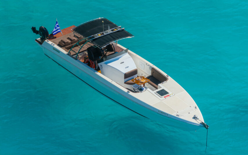 Explore the stunning lacy shores and crystal-clear waters of the Ionian Sea aboard our 5-meter boat, perfect for up to 4 people. Rent a boat and enjoy a private day with your loved ones, creating unforgettable memories surrounded by the breathtaking green and blue hues of the Ionian landscape.