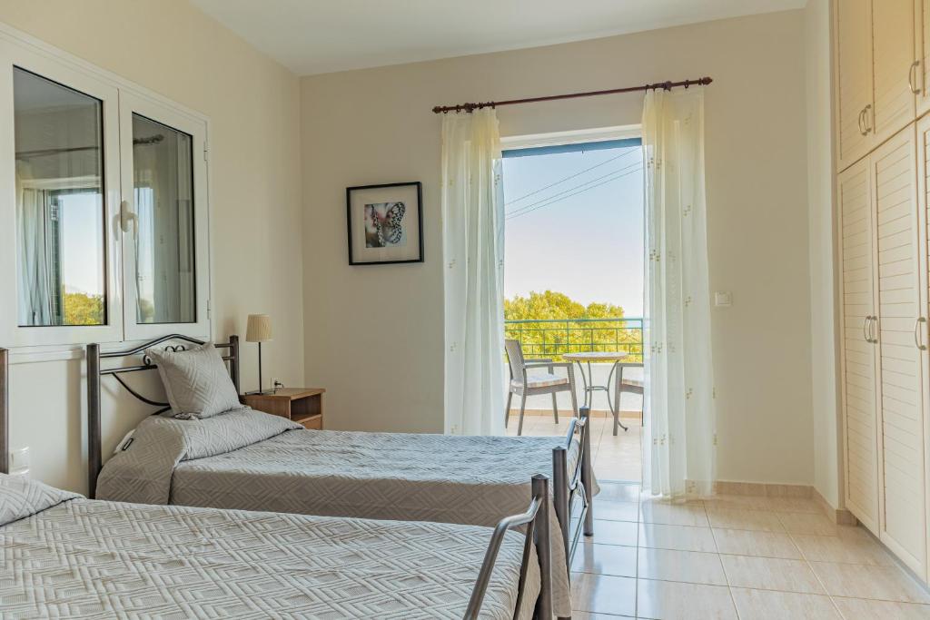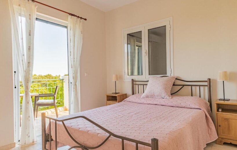 Villa Petra is luxuriously appointed throughout, featuring two spacious bedrooms with en-suite facilities and fully fitted wardrobes. A solid marble staircase leads to the first floor, where each bedroom opens onto a private balcony. These balconies provide breathtaking views, perfect for enjoying a refreshing gin & tonic while marveling at the spectacular Kefalonian sunsets.