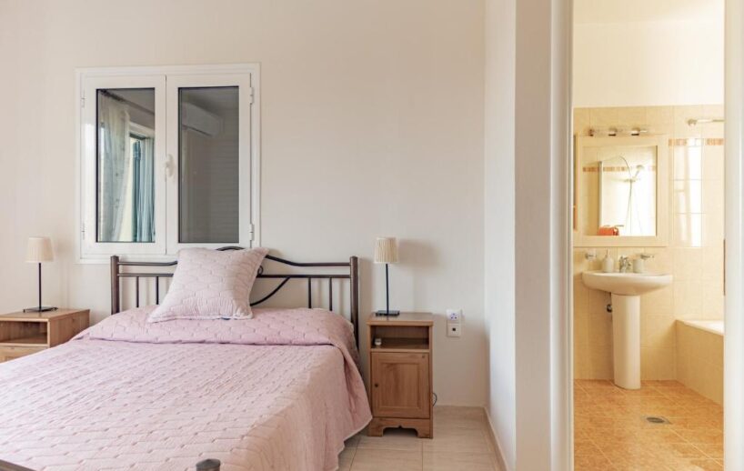 The surrounding area offers an array of facilities, including charming tavernas, restaurants, shops, and some of the island’s best beaches—just a 5-minute drive away.